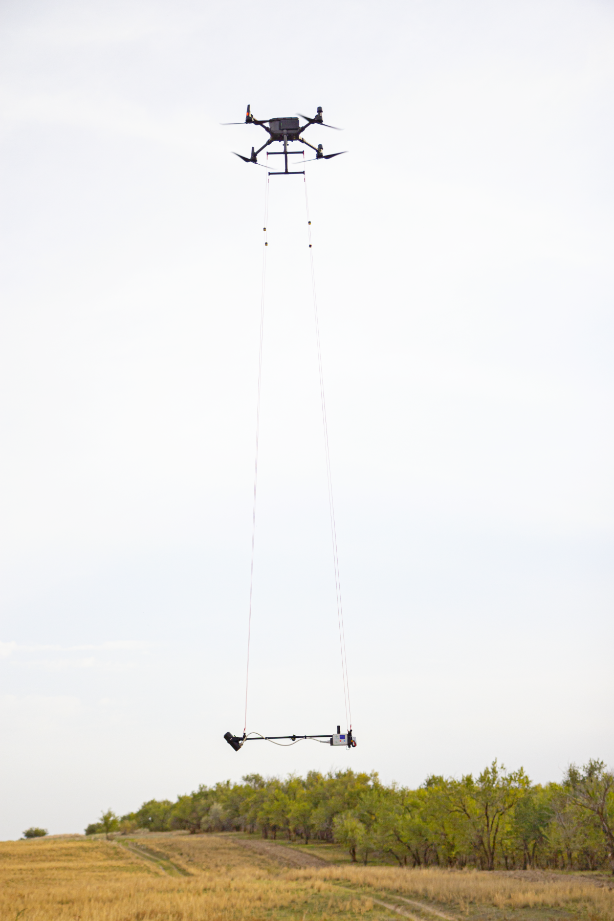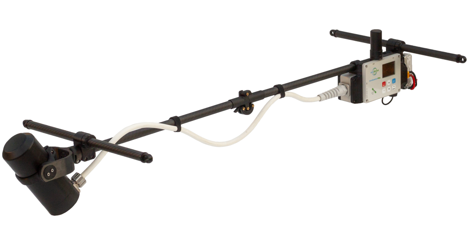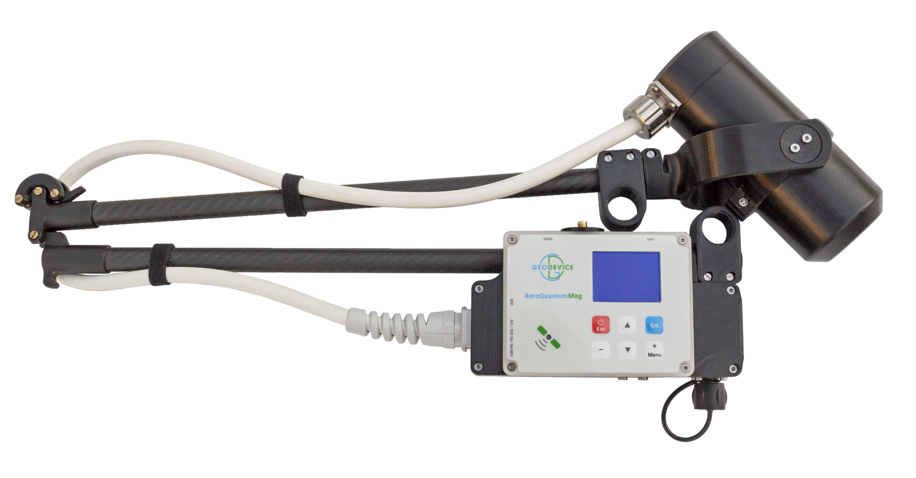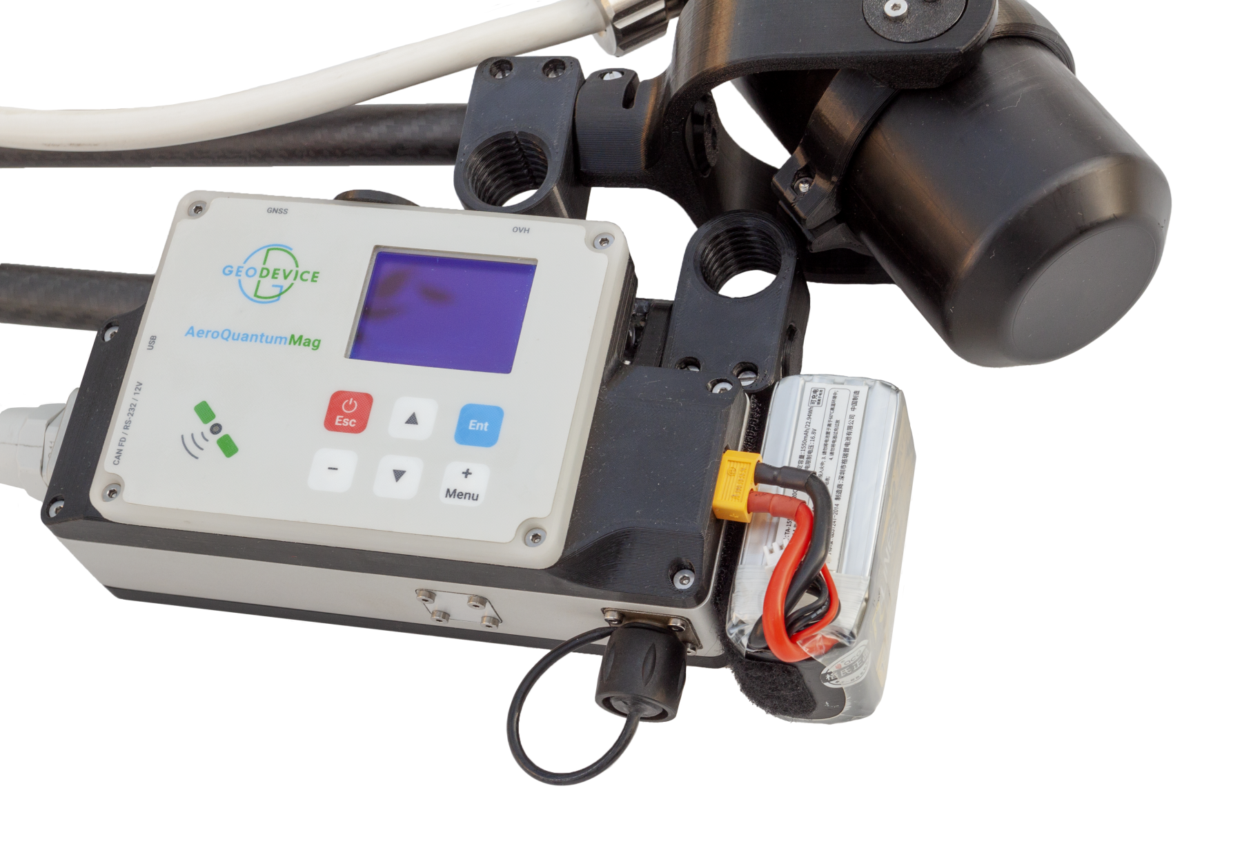 AeroQuantumMag is designed to efficiently perform magnetic survey work using drone. The device is featuring a high measurement speed (up to 1 000 Hz) and a sensitivity of 0.002 nT/√Hz rms. Aerodynamic body with carbon fiber frame weighs only 1.3 kg with battery. The low weight increases the flight time of the drone. The magnetometer requires no data exchange with the UAV and uses its own battery, so it can be used with any UAV.
