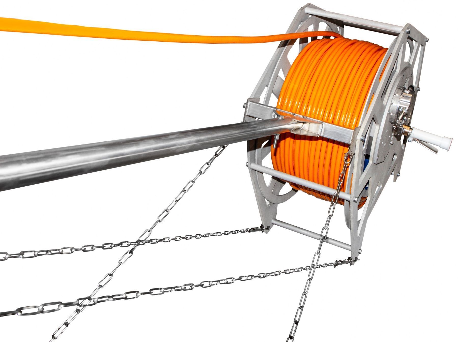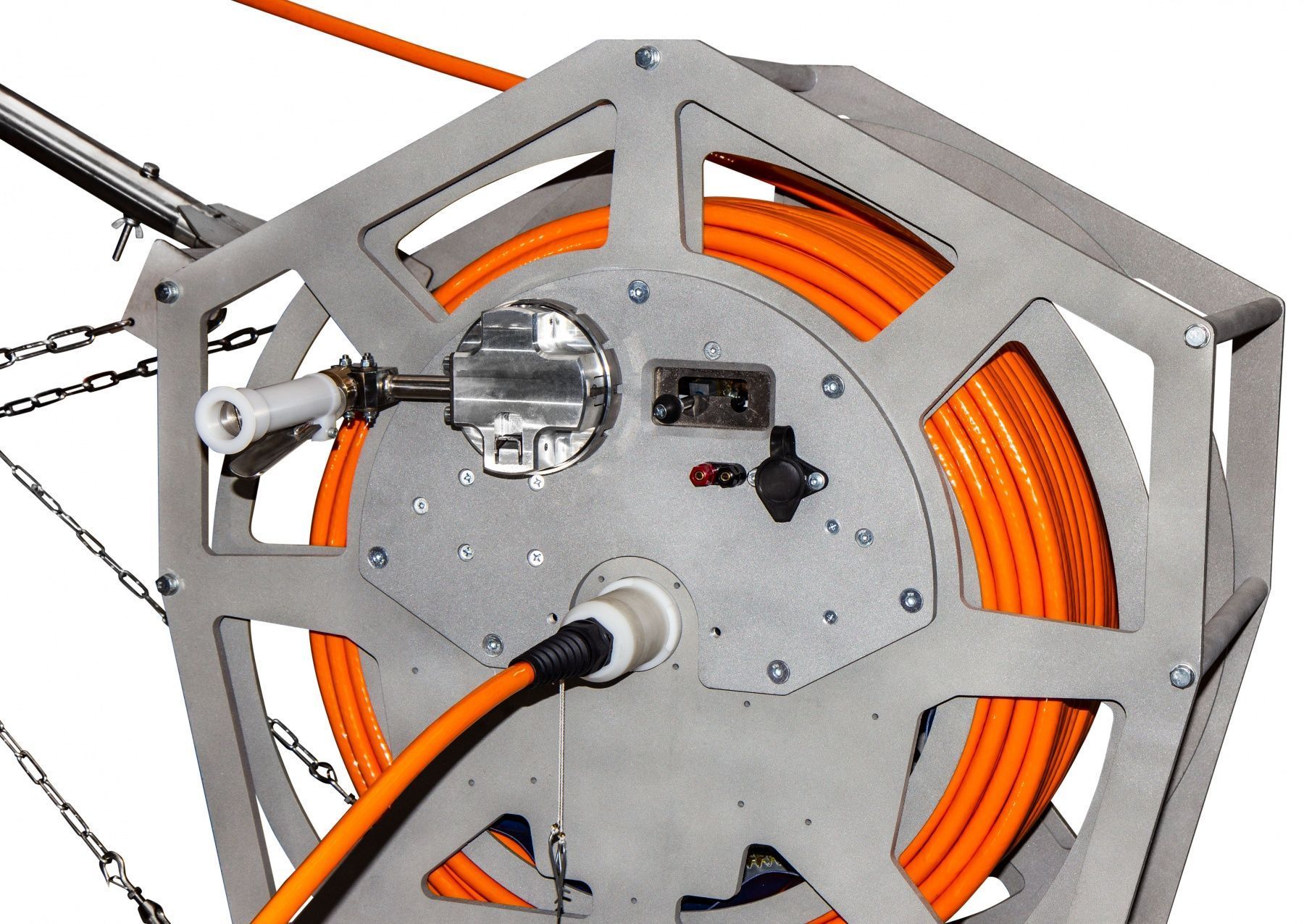 BGW lightwill weigh several tens of kilograms. At greater depths, it is better to use a power cable with a large cross-section of the core in order to balance the energy loss due to the ohmic resistance - it is only possible to work with such a line using a BGW or BGW light winches. Winches of this type can be equipped with built-in high voltage or stranded slip rings to ensure the operation of borehole sparker Pulse or borehole hydrophone (WellStreamer) and geophone (GStreamer) arrays.