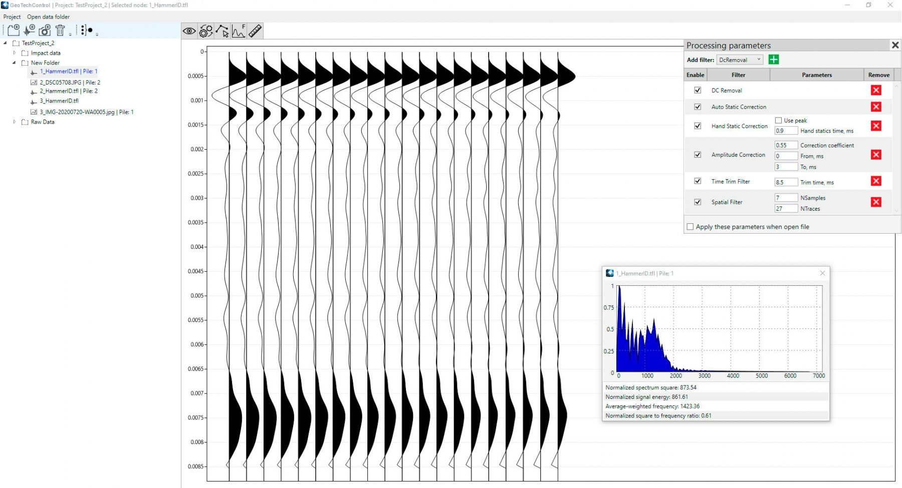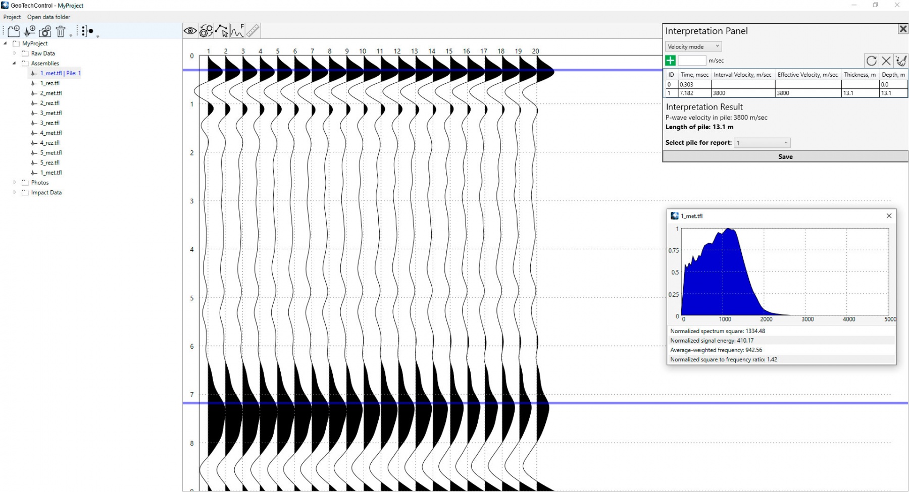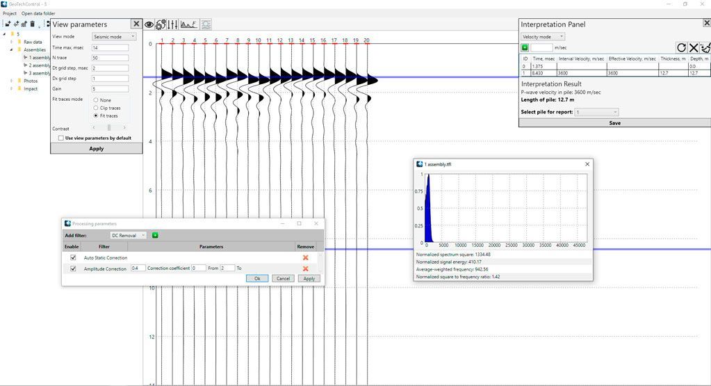 The GeoTechControl software is designed for processing and interpreting data obtained by the seismoacoustic method of surveying building structures
