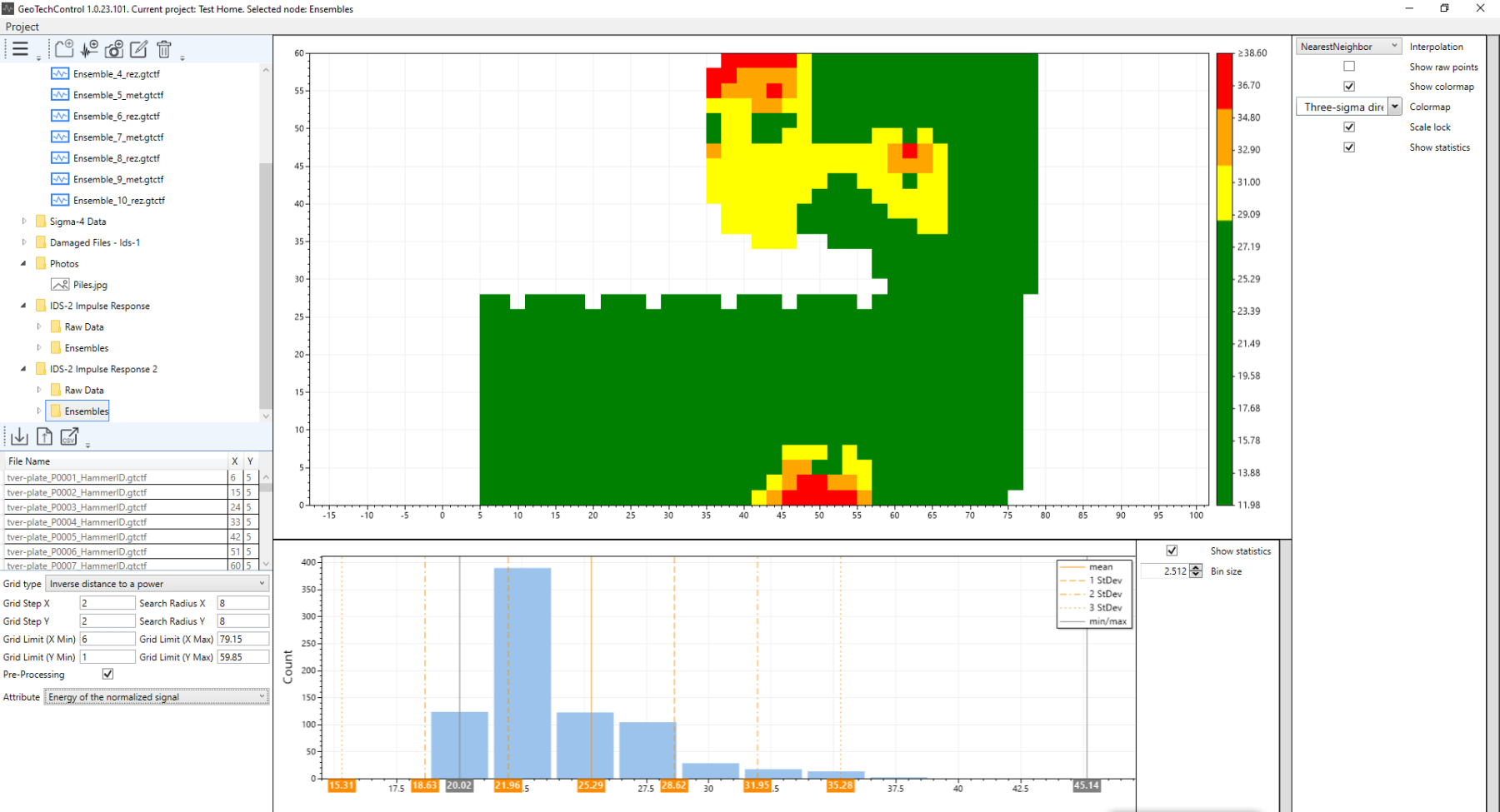 GeoTechControl implements a tool to process areal data and build attribute maps when working by the impact method on flat surfaces of foundations, tunnels and other building structures.