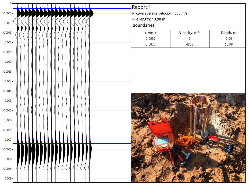Impact method (Pile/Sonic Integrity Testing) is a method of nondestructive testing of foundation integrity through the propagation of acoustic waves. During testing, a shock wave is being excited and propagates through the concrete structure. Then, the recorder receives a signal of the medium's response.