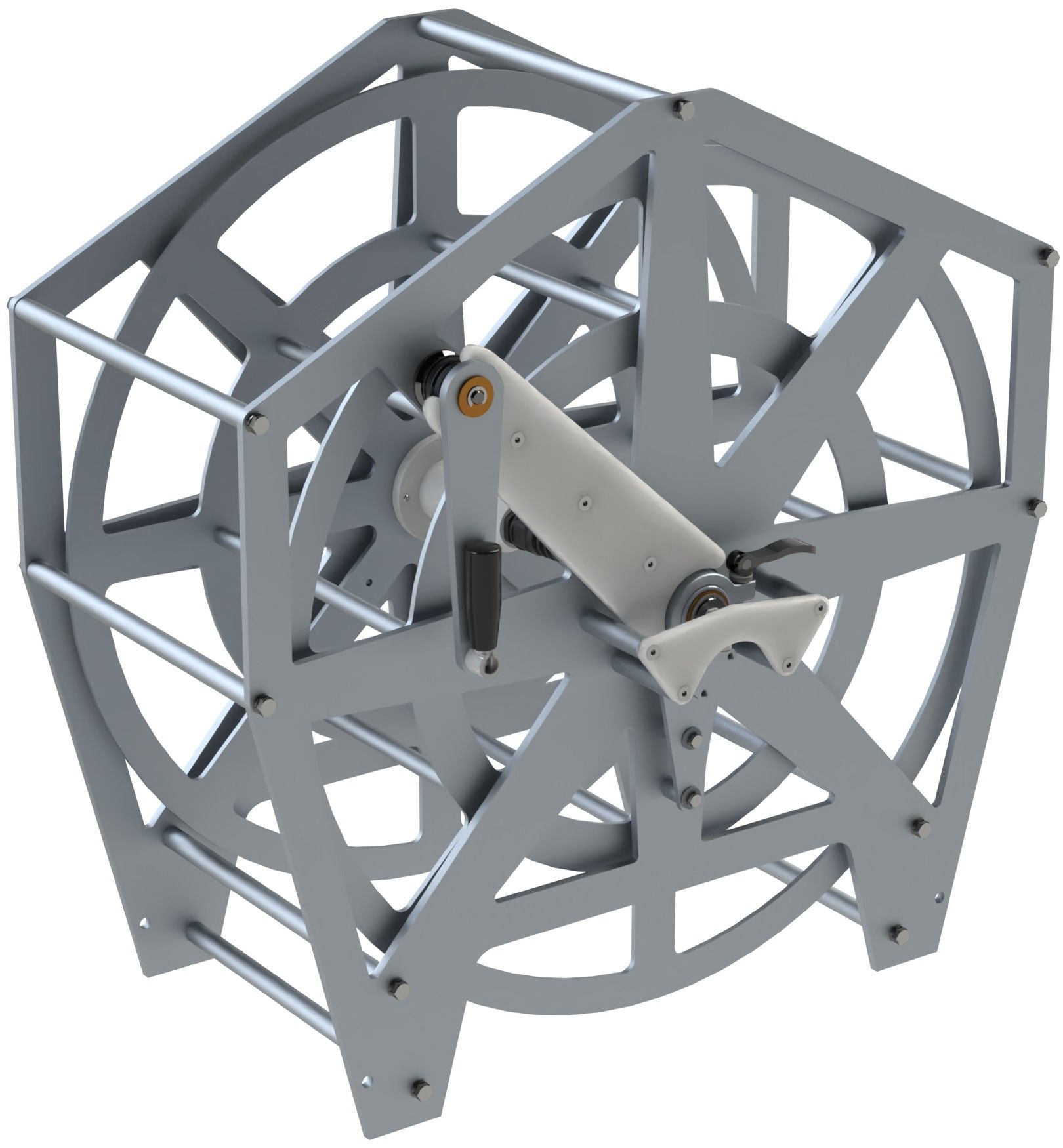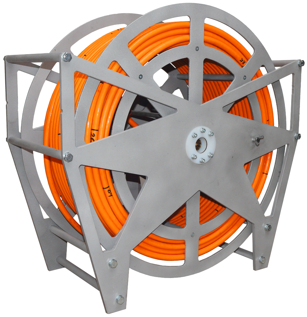 RT-5S reel is designed for the operation with borehole sparker Pulse. It is equipped with specially developed high-voltage slip ring that makes possible the high-voltage energy source while winding and unwinding the cable. Frames are made of lightweight and durable titanium alloy, the drum is made of aluminum alloy. The reel is equipped with ergonomic folding rotary handle. The reel frame has both special holder of the Pulse sparker and a drum lock.