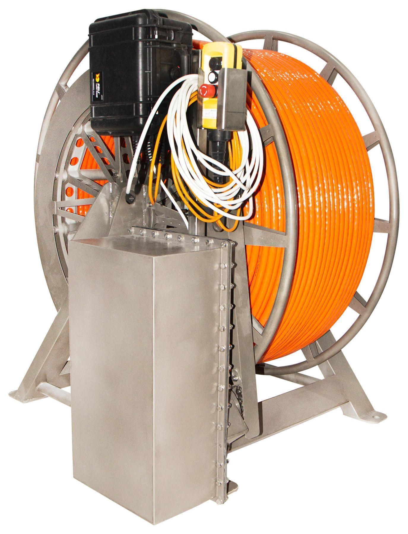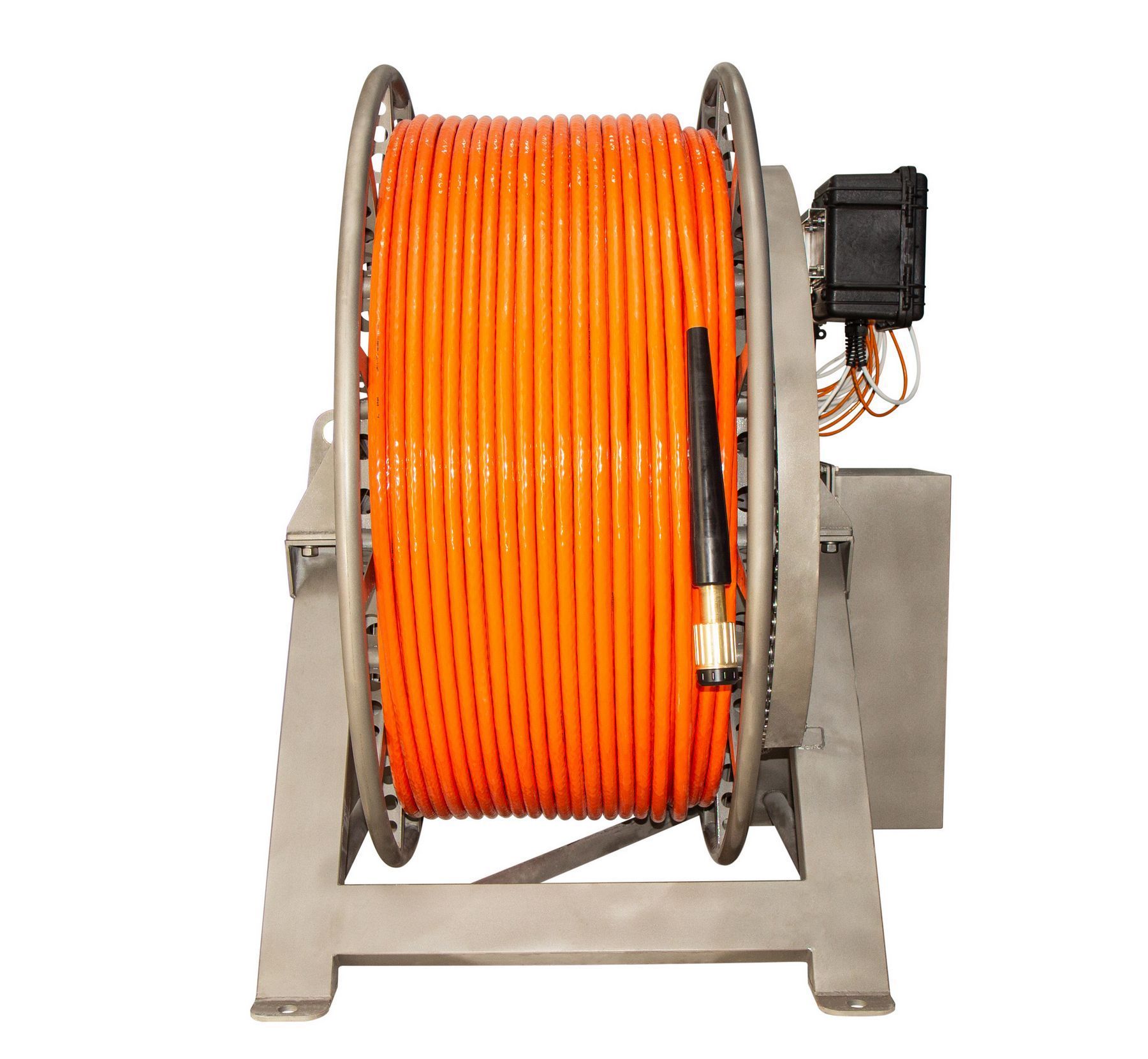 Cables, reels and winchesWe have thought of different use scenarios and have developed a sinking cable for hydromagnetic surveys, a floating cable for near-surface hydromagnetic surveys, and a steel cable for towed magnetometers or gradiometers. For the convenience of the device use, we offer reels with a slip-ring, winches with slip-ring and electric drive, high-speed deck winches with slip-ring, electric drive, cable layer and a cable counter.