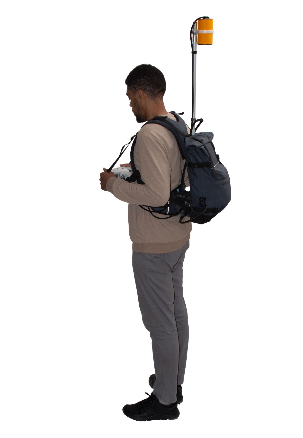 - Brackets for carrying two sensors in hand or in a backpack harness