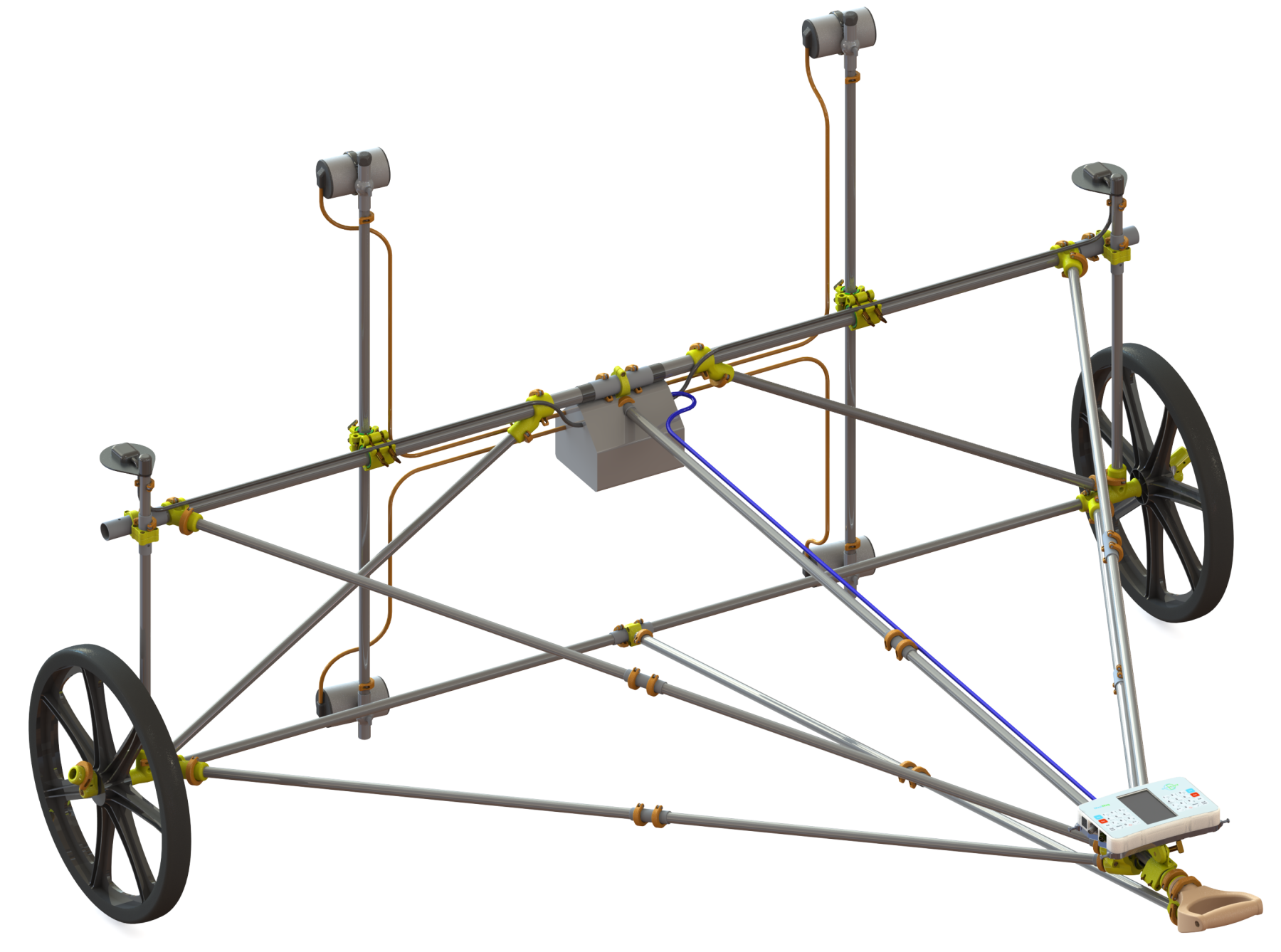 Walking MaxiMag and base station SmartMag are independent magnetometers with built-in GNSS receivers, consoles, and memory. SmartMag can also be used as a second sensor, turning MaxiMag into a fully functional, high-precision gradiometer. Both magnetometers can be mounted on the dedicated non-magnetic MagCart.