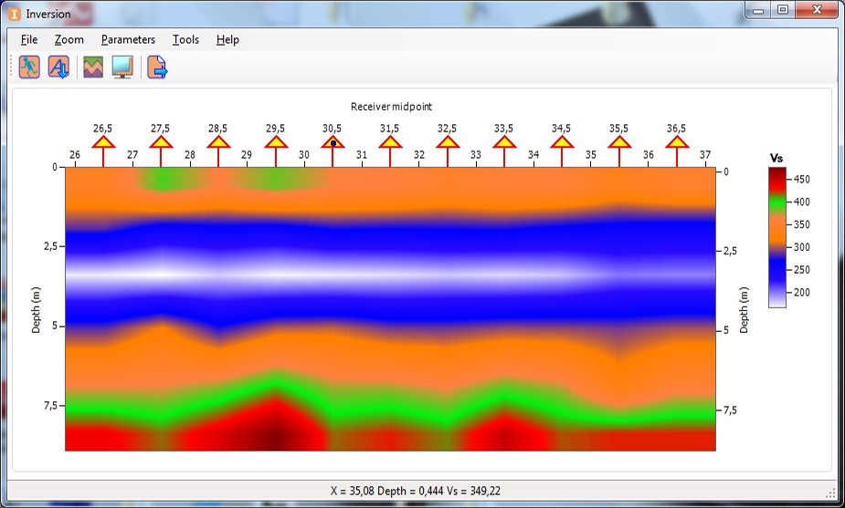 | Translation of data from the time scale to the in-depth and vice versa using different speed laws | + | + |
