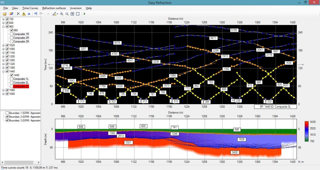 Seismic refraction surveys are widely used for shallow seismic engineering applications. Time-delay and GRM (General Reciprocal Method) methods are implemented in RadExPro.
