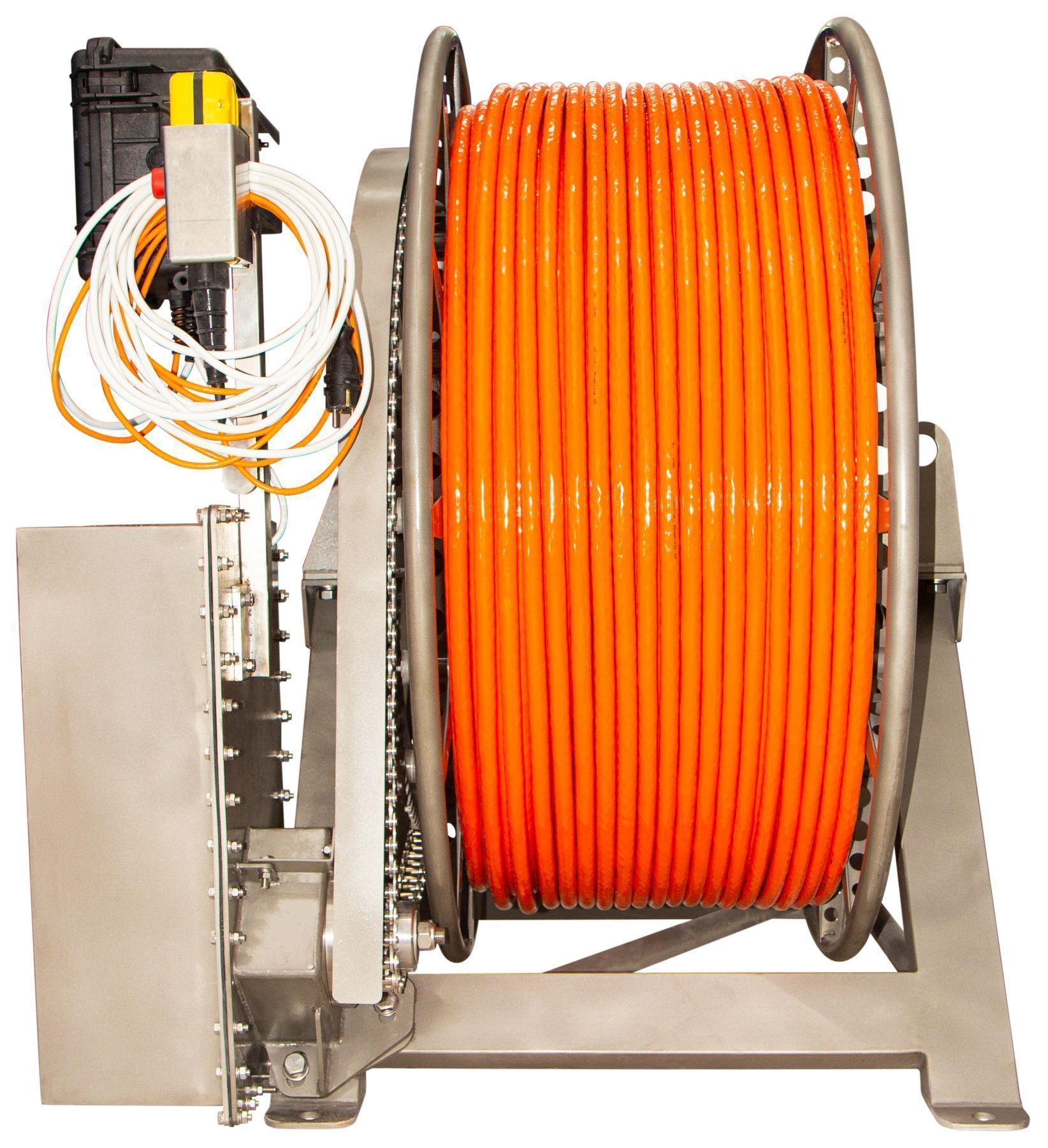 Our motorized winches are ideal for deploying and recovering 48-channel streamers and sparker power cables. Manual reels, on the other hand, are well suited for small vessels. The use of winches and reels greatly improves acquisition efficiency and operational safety. IP-67 protection and high quality materials make winches extremely durable and optimal for rough offshore environments.