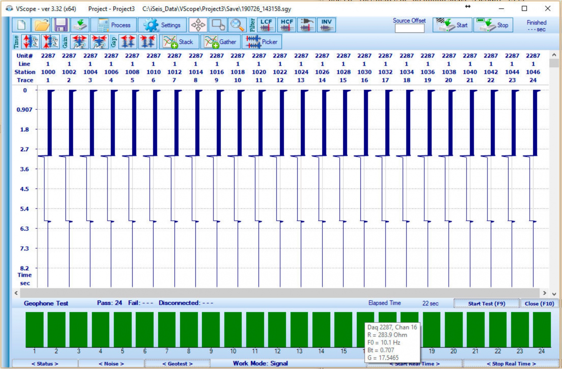 With its high-frequency ADC, the Sigma 4+ is perfect for almost any geotechnical task. For pile length testing (Pile Integrity Testing) and inspection of the footings (impact method), special high-frequency sensors GTSensor are connected to the seismograph. On foundation slabs, it is more convenient to use 4-channel LandStreamer towed seismic sensors as a receiver. The data can be processed in the GeoTechControl software.