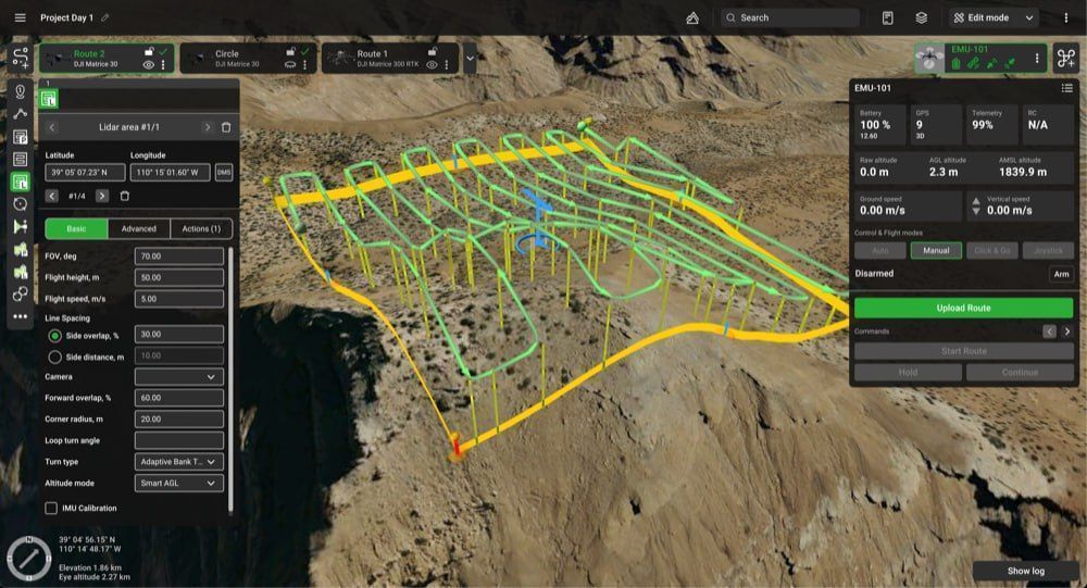 Often, drones come with their own flight control software. For example, one of the most popular enterprise UAVs from DJI is equipped with DJI Pilot 2, a native app designed for basic waypoint missions and simple inspections. However, when projects require advanced 3D planning, terrain-aware automation, or specialized workflows such as LiDAR and magnetometry surveys, operators turn to UgCS as a professional mission planning solution.