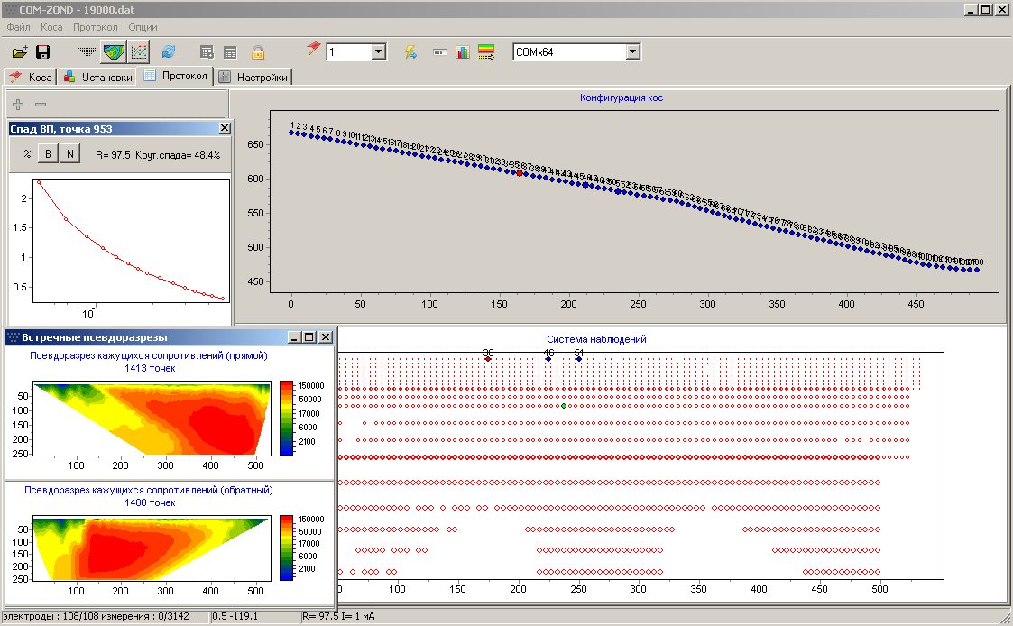 ZondProtocol represents ready solution for electrical tomography, and solves wide range of problems from protocol creating and field data processing to quality control and preparation data for inversion. The software provides support for the following instruments: SYSCAL, ABEM, COMMDD, ERA-MULTIMAX, TOMOZOND, OMEGA-48. Convenient interface and variety of data visualization features allow to solve wide range of geological problems with maximum effectiveness.