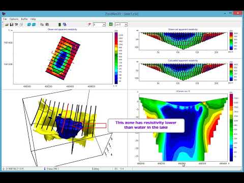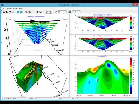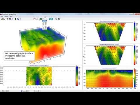ZondRes3D is designed for three-dimensional interpretation of electrical tomography resistivity and induced polarization data in land, cross-borehole and marine variants.