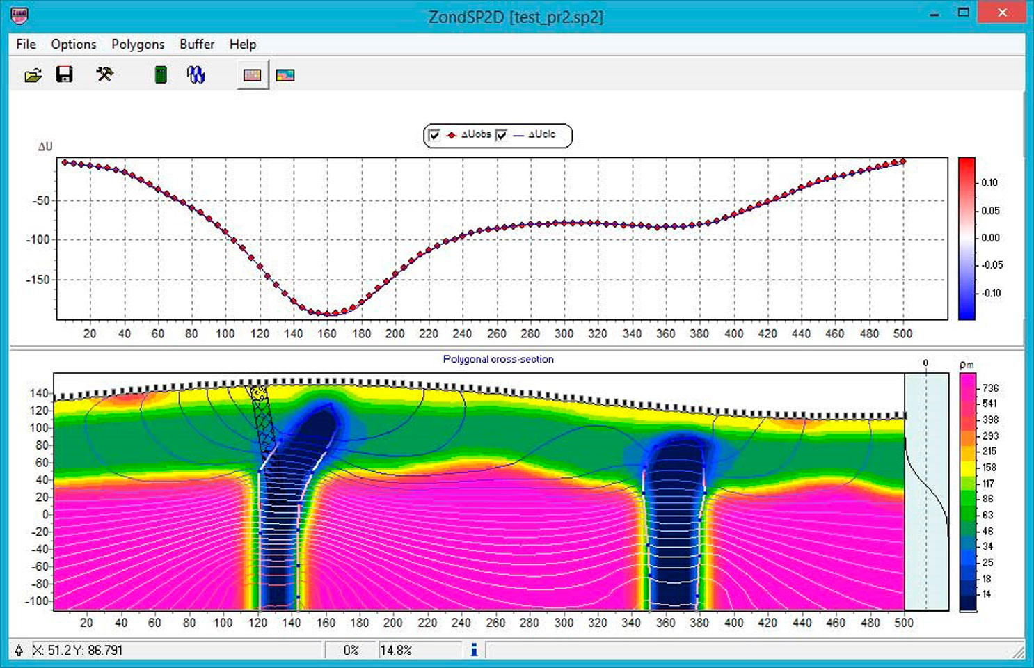 Software ZondSP2d is designed for 2D interpretation of self-potential (SP) data.