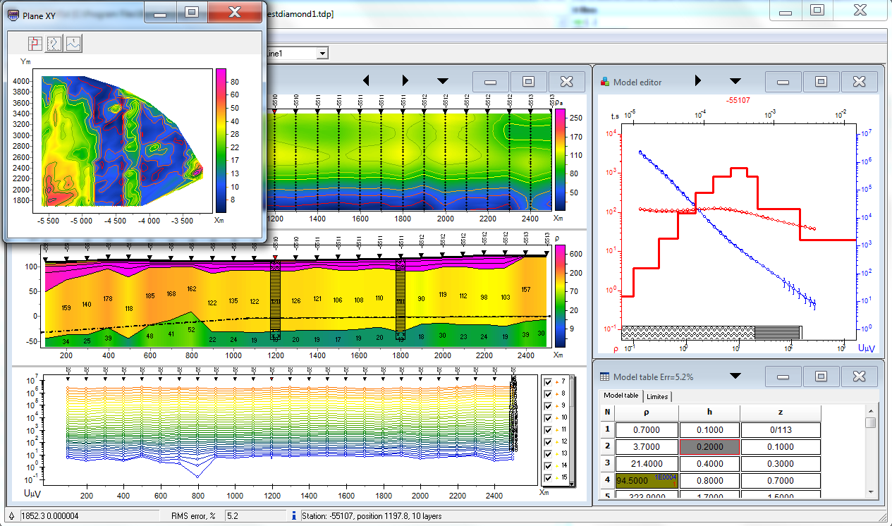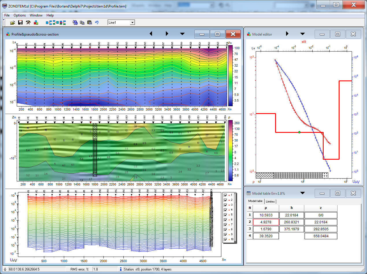 ZondTEM1D software is designed for one- dimension multi-stations interpretation of Transient ElectroMagnetic (TEM) sounding for various observation systems (Line-Loop, Loop-Loop, Loop-Line, Line-Line).